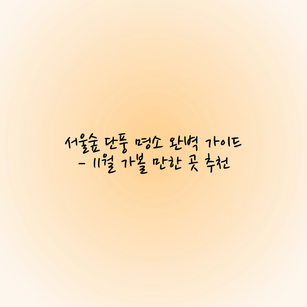 서울숲은 서울에서 가장 사랑받는 단풍 명소 중 하나로, 11월 초부터 본격적인 단풍 절정을 맞이합니다. 메타세쿼이아길과 은행나무길을 산책하며 가을의 정취를 만끽해보세요. 또한, 거울연못과 설렘정원에서 잊지 못할 추억을 남겨보는 것도 좋습니다.