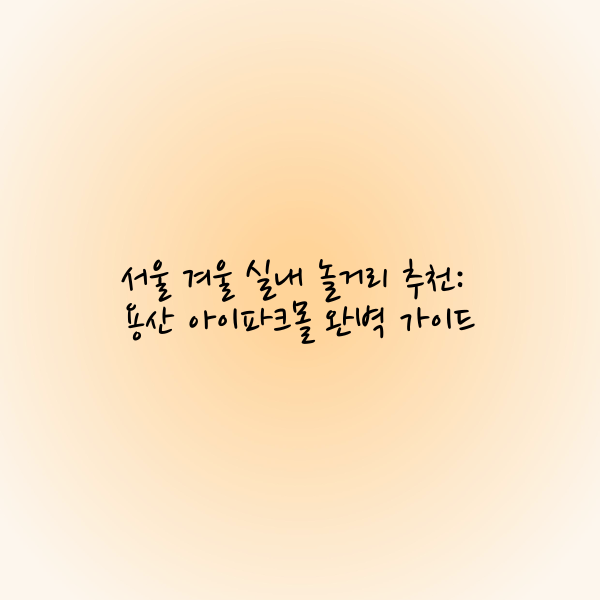 용산 아이파크몰은 서울의 중심부에 위치한 대형 복합몰로, 쇼핑과 문화, 먹거리를 한곳에서 즐길 수 있는 공간입니다. 겨울철 실내 데이트, 가족 나들이, 친구들과의 만남 장소로도 제격이죠.