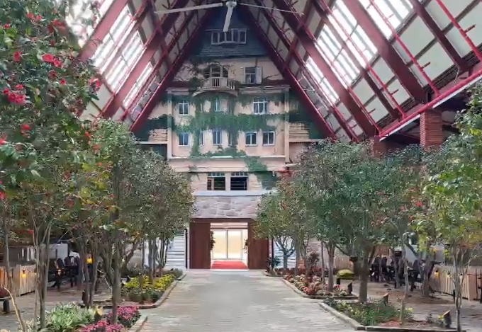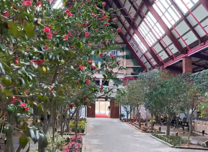 ✔ 45그루의 동백나무와 아름다운 벽화가 있는 실내 정원
