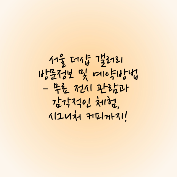 이번 포스팅에서는 서울 더샵 갤러리의 공간별 특징과 전시, 체험 프로그램을 소개하고, 방문 시 참고할 유용한 정보를 공유하겠습니다.
