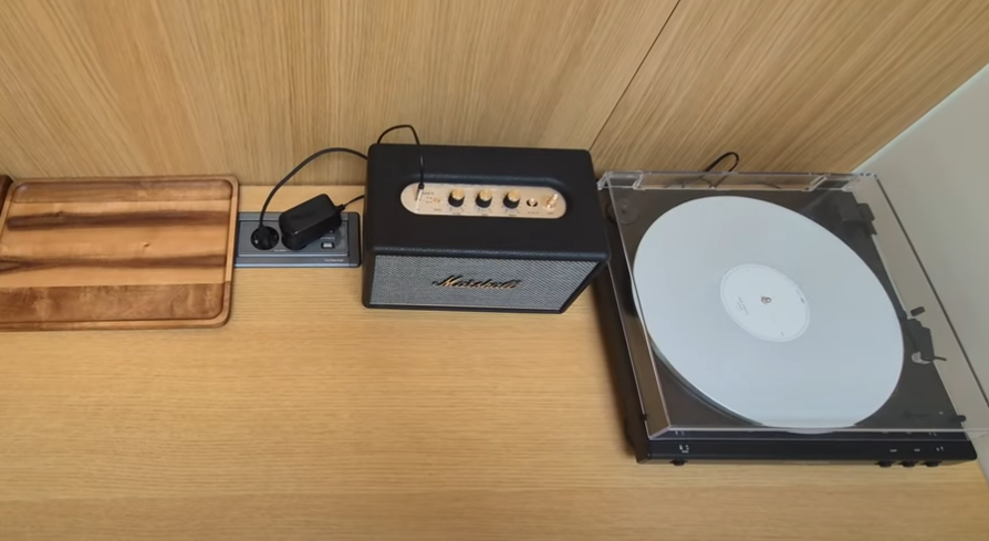 - LP 플레이어 + 마샬 블루투스 스피커: 클래식한 음악과 함께하는 아날로그 감성