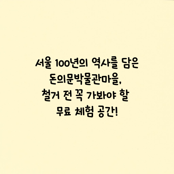 돈의문박물관마을은 단순한 전시 공간이 아니라, 서울의 시간이 고스란히 살아 숨 쉬는 **‘기억의 마을’**입니다. 무료로 즐길 수 있는 문화 공간이면서도 콘텐츠의 질이 높아, 누구나 만족할 만한 경험을 할 수 있습니다.