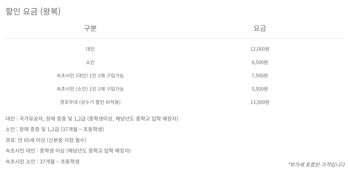 권금성 케이블카 요금