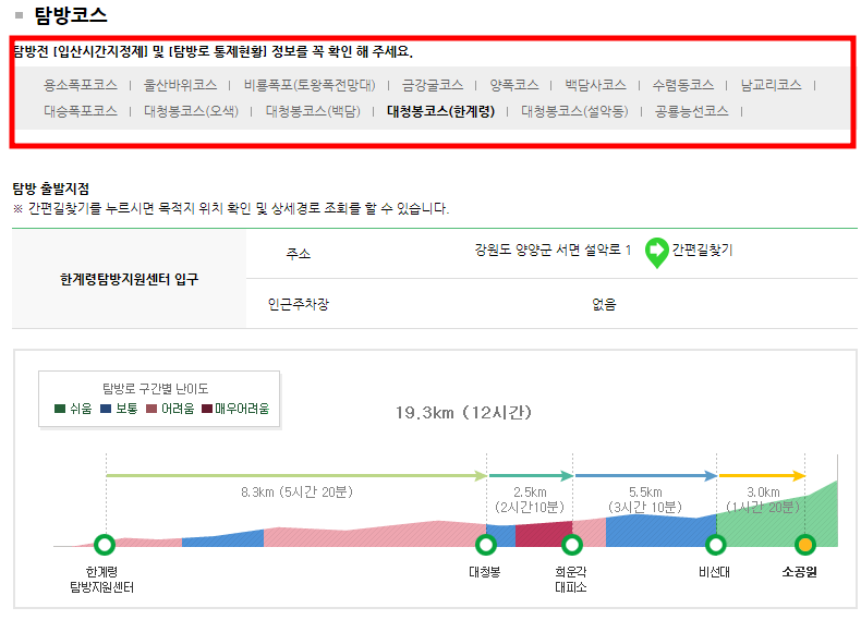 설악산 난이도별 등산코스 바로가기