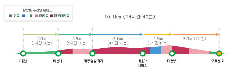 - 난이도: 매우 어려움 (특히 마등령 이후부터)