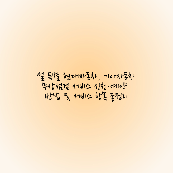 설 명절은 가족들과의 소중한 시간을 보내는 중요한 날입니다. 현대자동차와 기아의 설 특별 무상점검 서비스를 통해 차량의 상태를 사전에 점검하고, 안전하고 즐거운 귀성길을 준비하세요. 이 서비스는 비용 부담 없이 차량 상태를 점검할 수 있는 좋은 기회이므로 꼭 활용하시길 추천드립니다.
