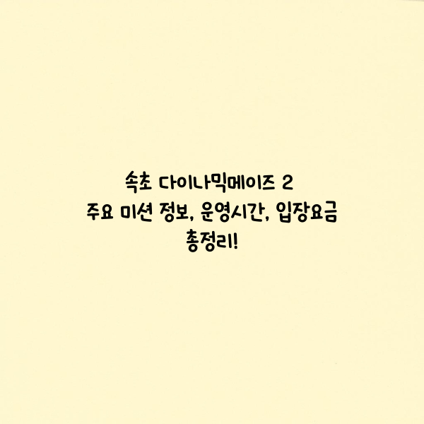 강원도 속초 여행을 계획 중이라면, 자연과 바다만 즐기지 마시고 이색 실내 체험 장소인 다이나믹메이즈2에서 짜릿한 모험도 경험해보세요!