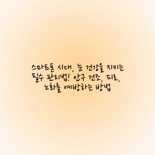 스마트 기기 사용으로 인한 안구 피로와 건조함은 이제 많은 사람들이 겪는 일상적인 문제가 되었습니다. 눈 건강을 위해서는 꾸준한 관리가 필요하며, 작은 습관의 변화만으로도 큰 효과를 볼 수 있습니다. 20-20-20 법칙을 실천하고, 실내 습도를 조절하며, 눈 건강에 좋은 영양소를 섭취하는 등 다양한 방법을 활용하여 눈의 피로와 건조를 예방해 보세요.