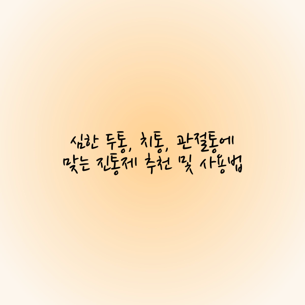 일상에서 느끼는 다양한 통증은 우리의 삶의 질을 크게 저하시킬 수 있습니다. 특히 두통, 치통, 관절통은 많은 사람이 흔히 겪는 문제로, 이를 적절히 관리하지 않으면 일상생활에 큰 지장을 줄 수 있습니다. 이 글에서는 각 통증의 특징에 따라 적합한 진통제를 추천하고, 올바른 사용법과 주의 사항에 대해 자세히 안내하겠습니다.