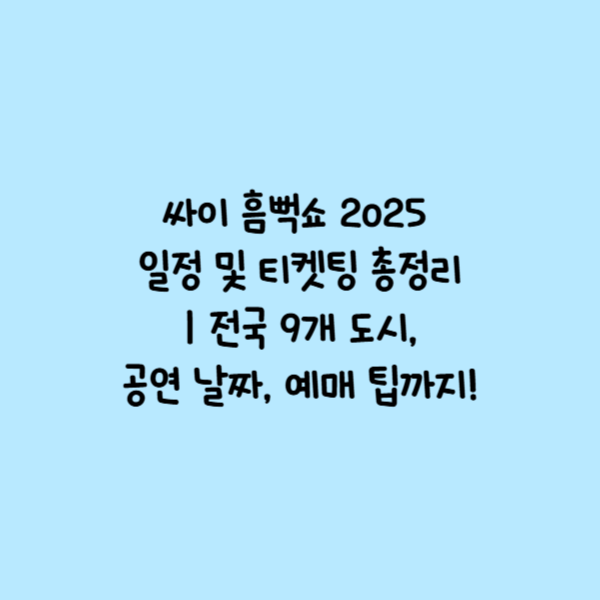 이번 포스팅에서는 2025 싸이 흠뻑쇼 일정은 물론, 도시별 공연 날짜, 티켓 예매 일정 및 팁, 예매 링크까지 한눈에 확인할 수 있도록 정리했습니다.
