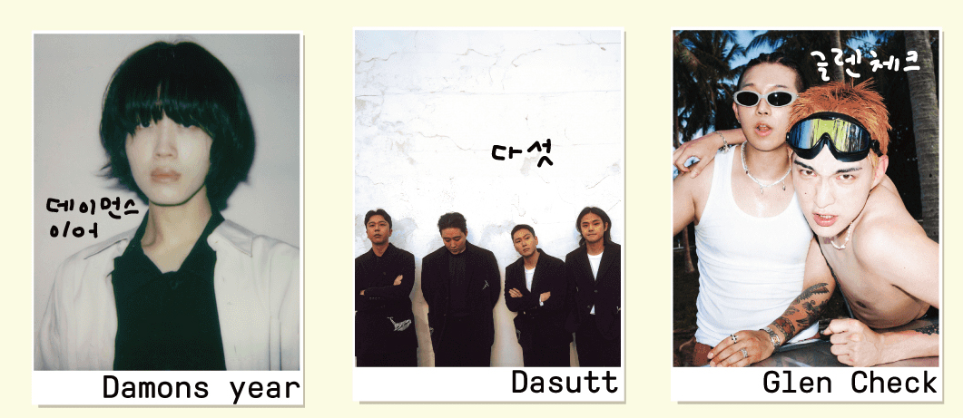 멜로망스, 적재, 김뜻돌, 윤마치가 서정적인 분위기를 이어가며, 신예 아티스트 데이먼스 이어와 지소쿠리클럽이 신선한 무드를 선사합니다.