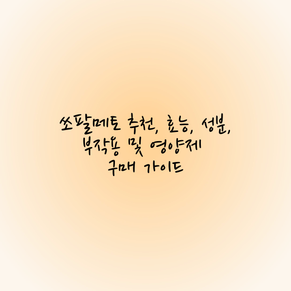 쏘팔메토는 남성 전립선 건강을 위한 대표적인 영양제로, 특히 중장년층 남성들 사이에서 큰 인기를 끌고 있습니다. 이 블로그에서는 쏘팔메토의 효능과 주요 성분, 그리고 부작용에 대해 알아보고, 구매 시 고려해야 할 중요한 사항들을 안내합니다. 쏘팔메토 영양제를 선택하려는 분들에게 도움이 되는 가이드로, 보다 효과적인 건강 관리에 도움이 되길 바랍니다.