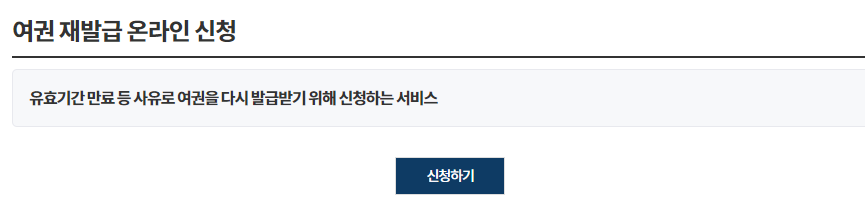 - 신청하기 '여권 재발급' 메뉴로 이동한 후, '신청하기' 버튼을 클릭합니다. 이 과정에서 본인의 신원을 확인하기 위해 공인인증서 또는 기타 인증 방법을 사용해야 할 수 있습니다.