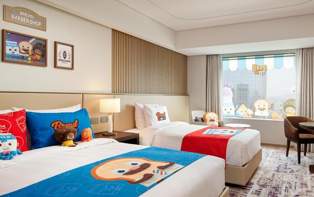 - 핑크퐁 테마 객실은 전용 캐릭터 소품과 함께 장식되어 있으며, 클래식 룸에 엑스트라 베드를 포함해 편안한 숙박을 제공합니다. 침구류부터 어린이 소파, 장난감, 키홀더까지 어디서나 핑크퐁의 매력을 만날 수 있습니다.