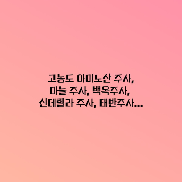 아미노산은 단백질의 구성 성분입니다. 고농도 아미노산 주사는 체내에 아미노산을 공급하여 근육 단백질 합성을 촉진하고 근육량 증가에 도움을 줍니다.