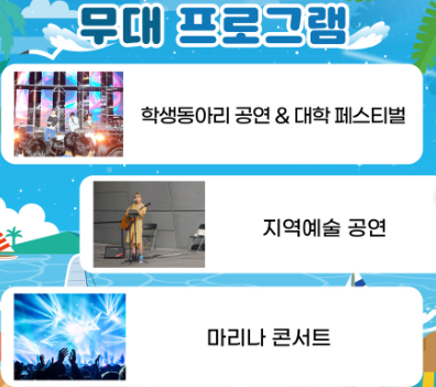 - 주요 프로그램: 물놀이, 요트 체험, 베이커리존, 다양한 공연 등
