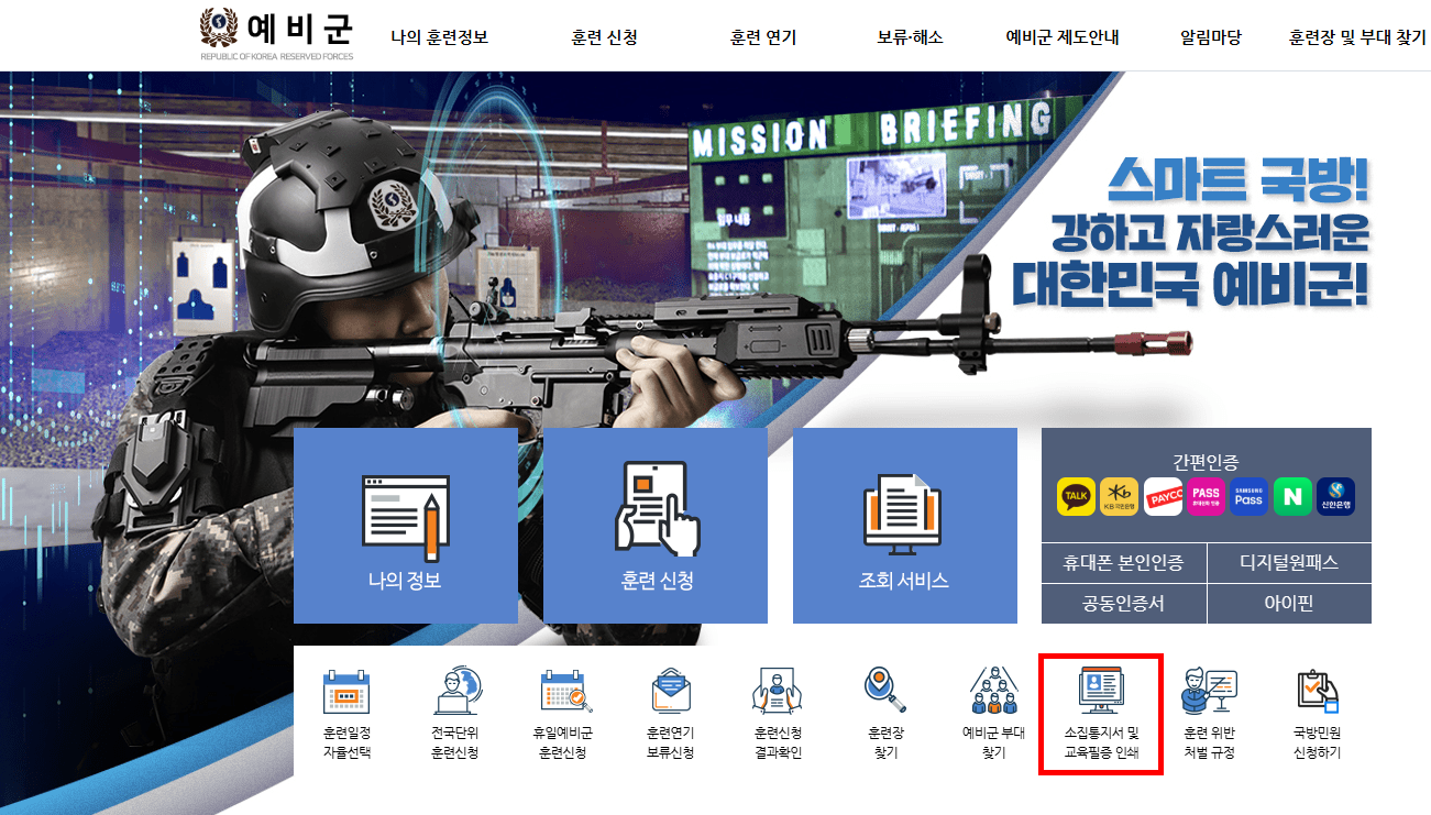 예비군 교육 필증 발급하기