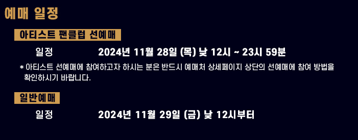 - 선예매: 2024년 12월 5일 (목) 오후 2시