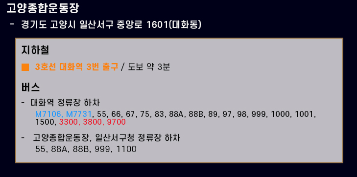 - 대중교통: 지하철 3호선 대화역 하차 후 도보로 이동 가능합니다.