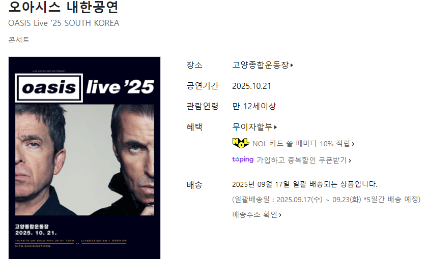 오아시스는 한국에서도 독보적인 팬층을 보유한 밴드로, 이번 공연은 그들의 음악을 사랑하는 팬들에게 잊지 못할 하루가 될 것입니다.