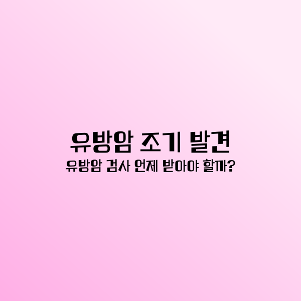 건강은 흔히 '잃어버려야 그 가치를 아는 보물' 이라고 합니다. 특히 여성의 건강 가운데 그 중요성과 조기 발견의 필요성이 강조되는 것 중 하나가 바로 유방암입니다. 이 글에서는 유방암 조기 발견의 중요성과 적절한 검사 시기에 대해 이야기 하면서 유방암 검사에 관한 궁금증을 해소할 수 있도록 유용한 정보를 제공하고자 합니다. 앞으로 상세히 살펴볼 내용은 유방암 검사의 시기 및 유방암 자가검진 방법 등의 전반적인 정보를 통해 여러분의 건강을 지키는 데 도움이 될 수 있기를 바랍니다.