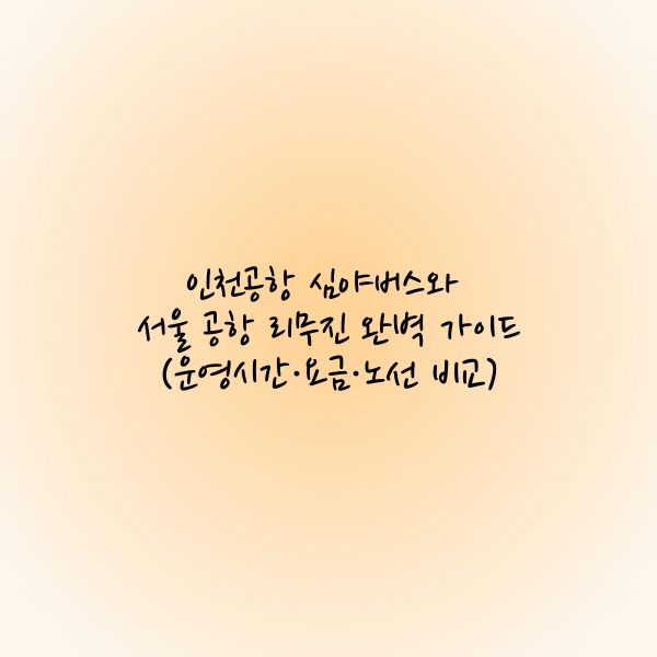 - 조용하고 편안한 이동 환경, 호텔 또는 주요 지점까지 바로 가고 싶은 분들이라면 서울 공항 리무진이 더 나은 선택일 수 있습니다.