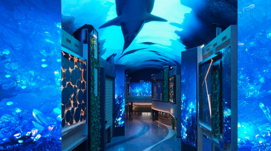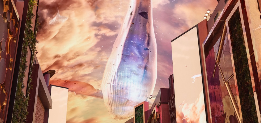 - 오로라는 150m에 달하는 천장과 벽면을 모두 초고화질 LED로 채운 디지털 아트 거리로, 관람객들에게 몰입력 있고 체험적인 광경을 제공합니다. 이 공간에서 방문객들은 단순히 쇼핑을 하기 위해 걸어다니지 않습니다. 대신, 바다 속의 고래를 보거나, 파란 하늘 밑에서 풀잎 사이를 걸어다니는 느낌을 경험합니다.