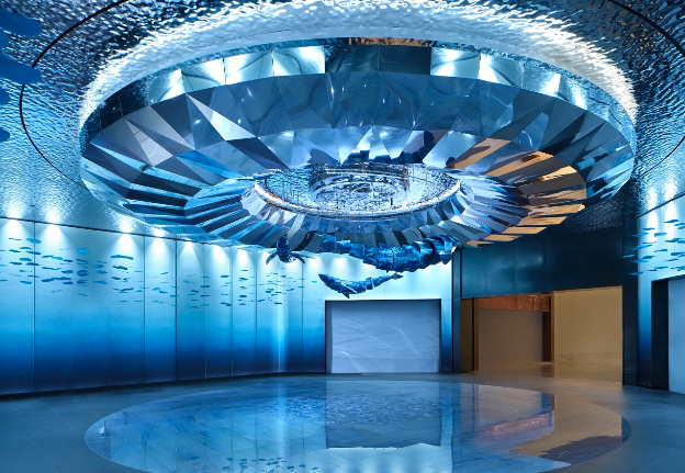 - 로툰다는 인스파이어 엔터테인먼트 리조트의 시그니처 포토스팟으로 빼놓을 수 없는 곳입니다. 오로라를 지나 아레나로 들어가는 순간 만나는 로툰다는 디지털 아트의 진수를 보여주는 공간입니다. 156개의 LED 패널로 이루어진 거대한 키네틱 샹들리에는 장관을 이루며, 관람객들에게 환상적인 시각적 경험을 선사합니다.