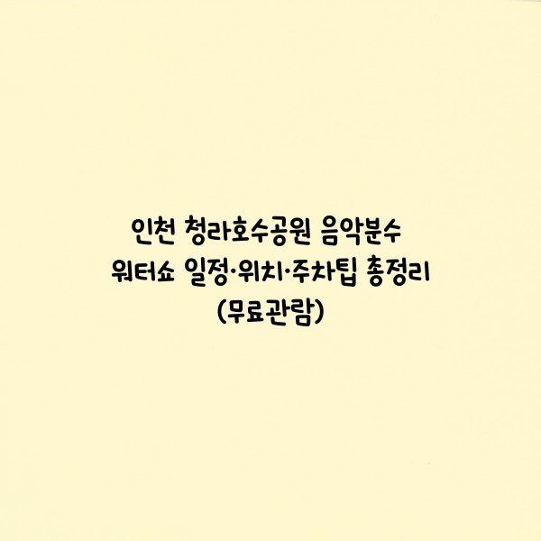 인천 청라호수공원 음악분수 워터쇼 일정·위치·주차팁 총정리 (무료관람)