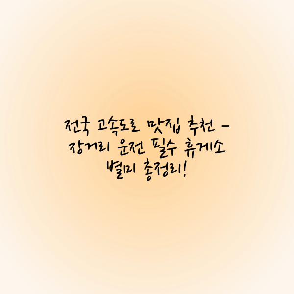 다음 번 고속도로 여행에서는 이 추천 리스트를 참고하여 더욱 알찬 미식 여행을 경험해보세요!