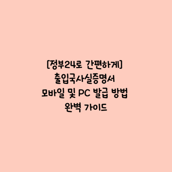 이번 글에서는 모바일(정부24 앱)과 PC(정부24 웹사이트)를 통한 출입국사실증명서 발급 방법을 2025년 최신 정보 기준으로 상세하게 정리해드립니다. 실제 신청 절차, 필요 인증 방식, 주의사항까지 함께 소개하니 끝까지 확인해보세요.