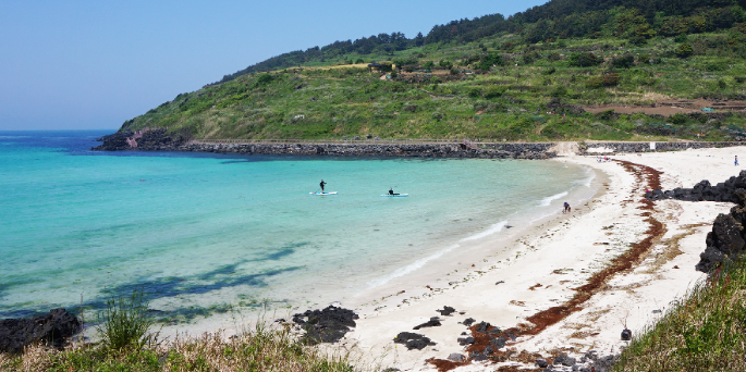 • 우도 내에서 가장 인기 있는 스노쿨링 포인트 중 하나로 꼽히는 서빈백사는 산호 자갈이 아름답게 이어진 해변으로 유명합니다. 이 자갈은 파도가 치더라도 물속을 맑게 비춰주어 스노쿨링을 즐기기에 안성맞춤입니다.