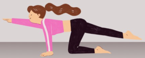 골반 주변 근육을 늘리고 관절을 풀어줘 유연성을 높여주는데 도움을 줍니다. 오른팔과 왼팔을 들었다 내리고 번갈아 실시하여 줍니다.