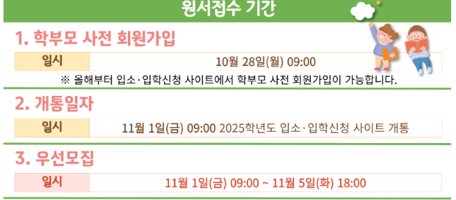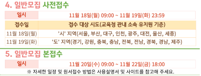 - 일부 유치원은 형제·자매 재원 여부 등 추가 조건이 있을 수 있습니다.