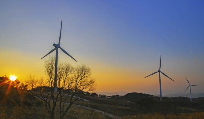 - 언덕 위로 펼쳐진 풍력발전기의 장관