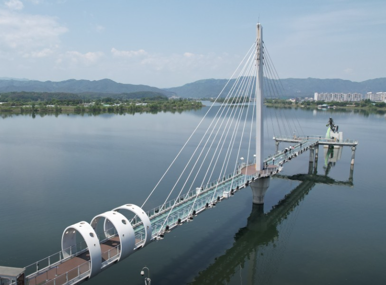 - 스카이워크 끝에 위치한 쏘가리 조각상에서는 분수가 올라오는 모습도 감상할 수 있어 더욱 낭만적인 시간을 보낼 수 있습니다.