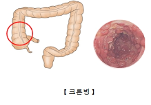 크론병은 입에서 항문까지 소화기관 전체에 발생할 수 있는 만성 염증성 장질환입니다. 궤양성 대장염과 달리 장의 모든 층에 염증이 침범할 수 있으며 주로 대장과 소장이 연결되는 부위인 회맹부에 발병하는 경우가 흔하고 그 다음으로 대장, 회장 말단부, 소장 등에서 많이 발생합니다.
