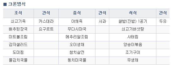 권장 식품- 흰밥, 연한 쇠고기, 돼지고기 살코기, 계란, 두부, 생선, 애호박, 가지, 양송이 버섯 등 부드러운 야채, 과일, 영양 보충음료