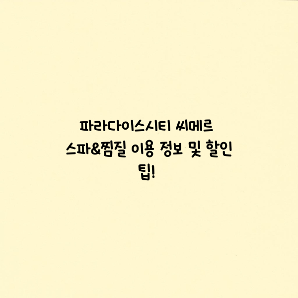 파라다이스시티 씨메르 스파&찜질 이용 정보 및 할인 팁!