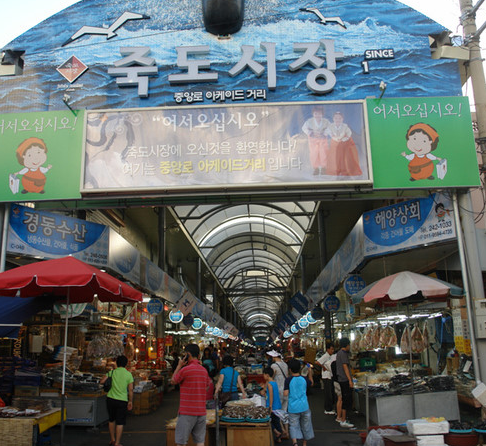 • 포항을 대표하는 시장인 죽도시장은 포항 수산종합어시장에 위치하고 있습니다. 이 시장은 횟집이 200여 개가 밀집되어 있는 만큼 수산물과 건어물로 유명합니다.