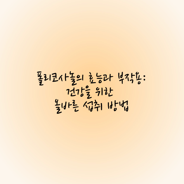 건강을 위해 영양제를 섭취할 때는 개인의 건강 상태에 맞는 올바른 복용법을 따르는 것이 핵심입니다. 폴리코사놀을 적절히 활용하여 건강한 생활을 유지하세요!