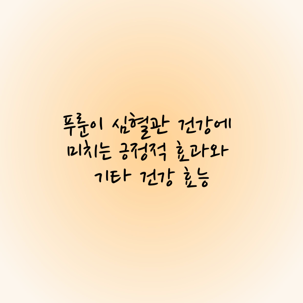 심혈관 건강이 중요한 현대사회에서 푸룬은 간단하면서도 효과적인 건강 관리 방법이 될 수 있습니다. 하루 한 줌의 푸룬을 통해 건강한 삶을 시작해보세요!