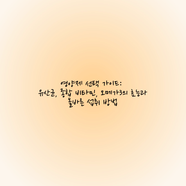 유산균, 종합 비타민, 오메가3는 각각의 효능과 역할이 뚜렷하며, 현대인에게 필수적인 영양소를 제공합니다. 그러나 무작정 구매하기보다는 제품의 성분과 원료, 자신의 건강 상태를 고려해 맞춤형으로 선택하는 것이 중요합니다. 꾸준한 복용과 더불어 건강한 식습관, 규칙적인 운동을 병행한다면 더욱 큰 효과를 얻을 수 있습니다. 건강한 삶을 위해 오늘부터 올바른 영양제를 선택해보세요!