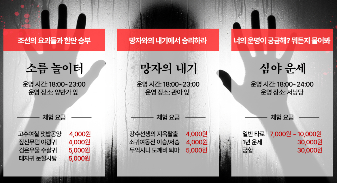 공포도 체험하고, 전통 문화도 느끼며, 친구들과 특별한 추억까지 만들 수 있는 기회!