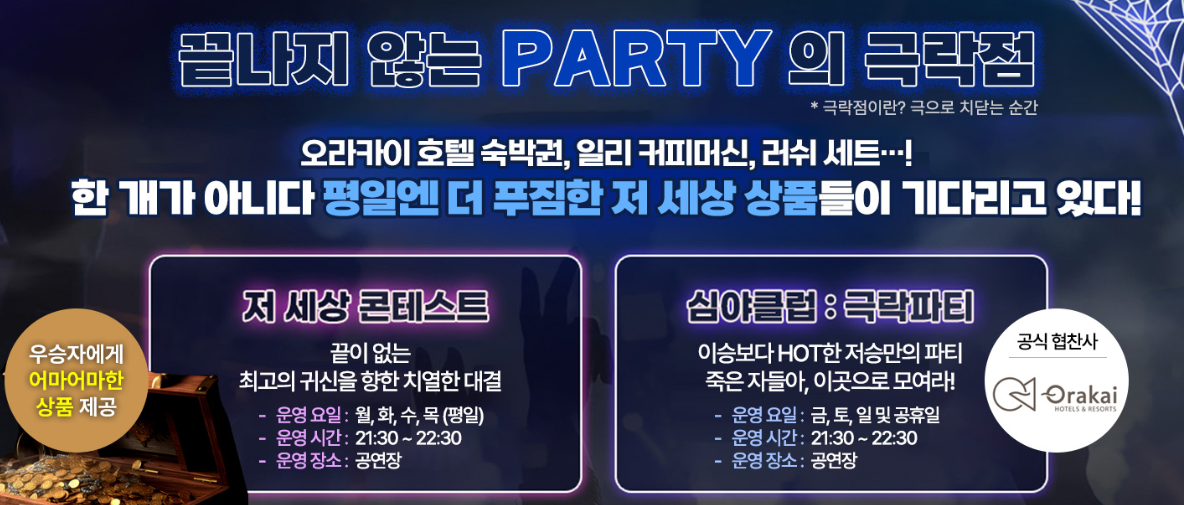 이번 여름, 무더위를 제대로 날려줄 심야공포촌에서 찐 오싹함을 경험해보세요.