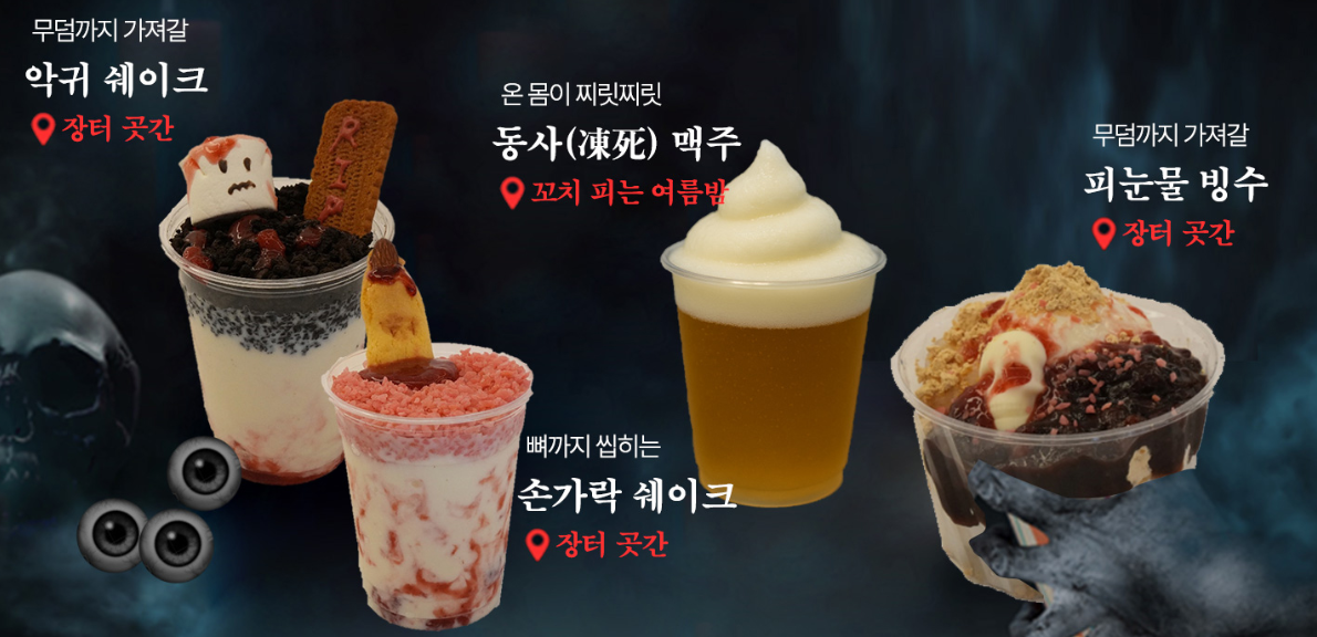 공포에 지친 몸을 위로해줄, 오직 심야공포촌에서만 먹을 수 있는 스페셜 간식들!