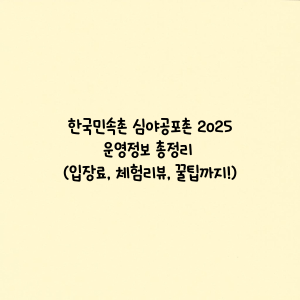 이번 포스팅에서는 2025년 한국민속촌 심야공포촌의 운영 기간, 입장료, 공포체험 콘텐츠, 간식 정보, 관람 꿀팁까지 모두 정리해드릴게요. 공포 콘텐츠를 좋아하신다면 절대 놓치지 마세요!