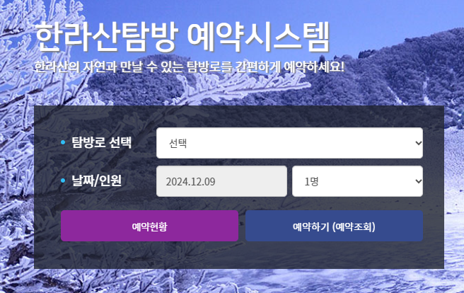 - 한라산국립공원 예약 시스템에 접속합니다.