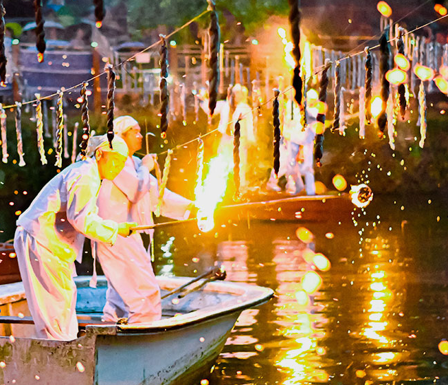 - 낙화놀이의 핵심은 불꽃이 물 위로 떨어지는 장면을 제대로 감상하는 것입니다.