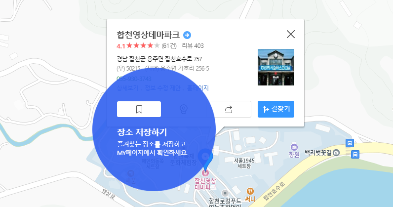 - 신주소: 경상남도 합천군 용주면 합천호수로 757